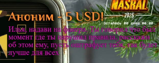 F1ashko - Подвергался нападкам чемоданов. Его спидраны вызывали вопросы у большинства участников ивента. Несмотря на негатив со стороны зрителей меда, заслужил звание героя NASRAL. Не подвёл короля, и организовал свидание Алины Рин с пиписькой. Не просто занял первое место, но и заслужил любовь зрителей, и сладкий подарок на Новый год. Вписан в подсосы.