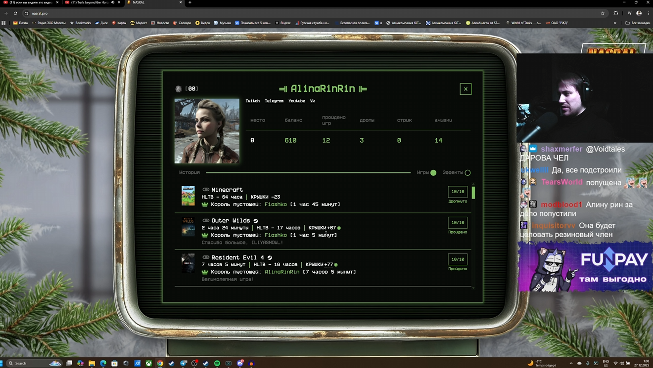 самое смешное бля она сама выбрала майнкрафт (был огромный донат на то что она сама выберет) видимо с логикой хуле там детишки играют пройду быстренько и потом сама же дропнула майнкрафт, когда чмодье по итогу получается дропнул свой кал - не дропнула бы, сейчас бы была не на последнем месте она буквально насрала себе на ебло, а скулит и визжит на всех, кроме себя