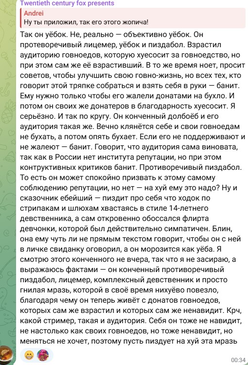 >>25896813 пизда, я пасту в телеге от симпа читаю или очерки белинского накс... чё за психоанализ жопича, я бы сказал что эта баба пишет, но по слогу вижу - симп обыкновенный