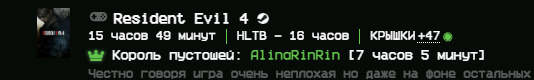 Чмодье Ебаное использовал чит на автопарирование в Resident Evil 4, значит прохождение этой игры не в счет, и он не получает за него 63 крышки, и значит это Чмодье на последнем месте в ивенте