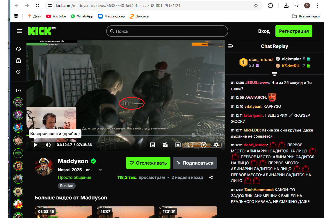 Кто то скажет что в RE4 можно часто нажимать кнопку парирования и таким образом автоматически парировать удары. И Чмодье действительно так делал на второй битве с Краузером в руинах с ловушками где Краузер часто атакует из засад во время продвижения Леона по руинам 5:05:06 https://kick.com/maddyson/videos/56325540-6ef4-4e2a-a3d2-801f29151f21 там он так делал потому что чит на парирование не парирует автоматически во время бега, это написано даже в описании чита >Optional no auto parry while running https://www.nexusmods.com/residentevil42023/mods/379 В этом случае он закликивал кнопку парирования и было видно и слышно что Леон часто из за этого меняет позу и издает характерные звуки. Однако если бы он использовал это закликивание в первой битве с краузером на ножах под замком, то их тоже было бы видно и слышно, а их не было видно и слышно но при этом почти все удары Краузера Чмодье парировал 1:11:41 https://kick.com/maddyson/videos/56325540-6ef4-4e2a-a3d2-801f29151f21 После этого он понял что слишком сильно палится с этим читом, и попытался организовать какое то прикрытие. Вот это является вторым признаком того что Чмодье играл с читом.