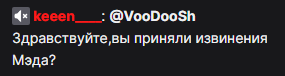 >>25906373 Скажет я уверен, там максимально калькулейтед холодная ответка будет, унизительная для жопича. Как она в конце стрима плакала а когда чел на донатере ее нищей назвал слезы пропали и она супер надменным голосом сказала что она что угодно но не нищая. Думаю такой же вайбик будет.