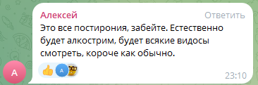 Алина Рин обязательно бы послала нахуй Чмодье с его подачками, но она уже 26 часов плачет в подушку и не может взять телефон и узнать о происходящем. А так бы сразу пост в канал написала. Понимать надо.
