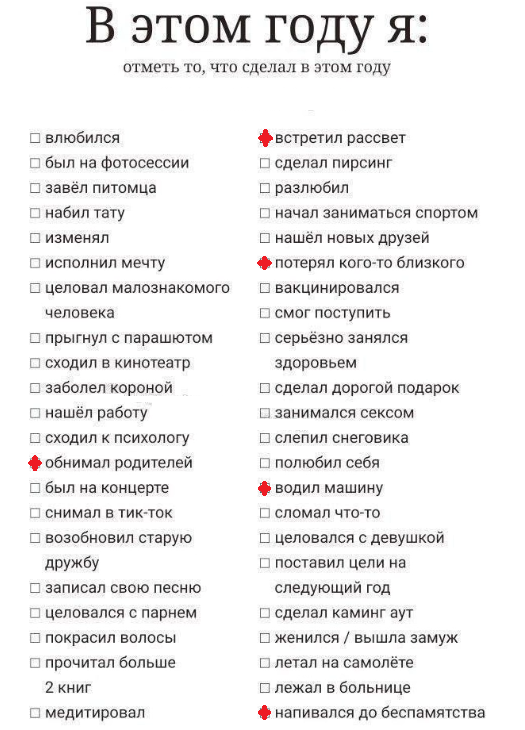 Что вы хорошего сделали за этот год? Я вот бросил курить. Если пить я бросил без проблем, то с сигаретами получилось хуево. Первый месяц просто невыносим, дальше чуть легче, вот уже почти 10 месяцев не курю, но иногда рука сама тянется. Насколько же это привычка дерьма.