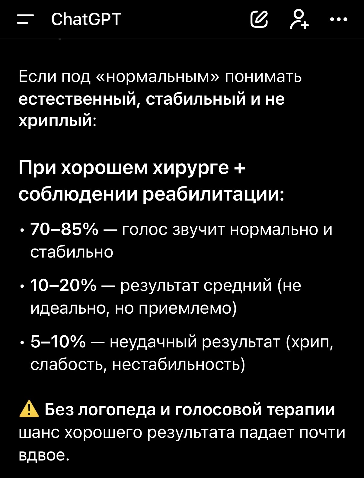 Итак, ленивый пидор Денис решился таки на операцию на голос? Будет как с жопой и сиськами. Но главное - это все все равно сработает только для стримов, где одно лицо и пол тела, в реальной жизни ничто не поможет.