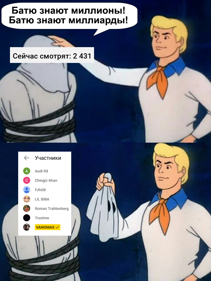 >>26028698 Лол, залетные, которые смотрят Батю годами, ага. Да, Батя - не Мистер Бист, но аудитория у него стабильная и преданная, потому что Батя - легенда нижнего.
