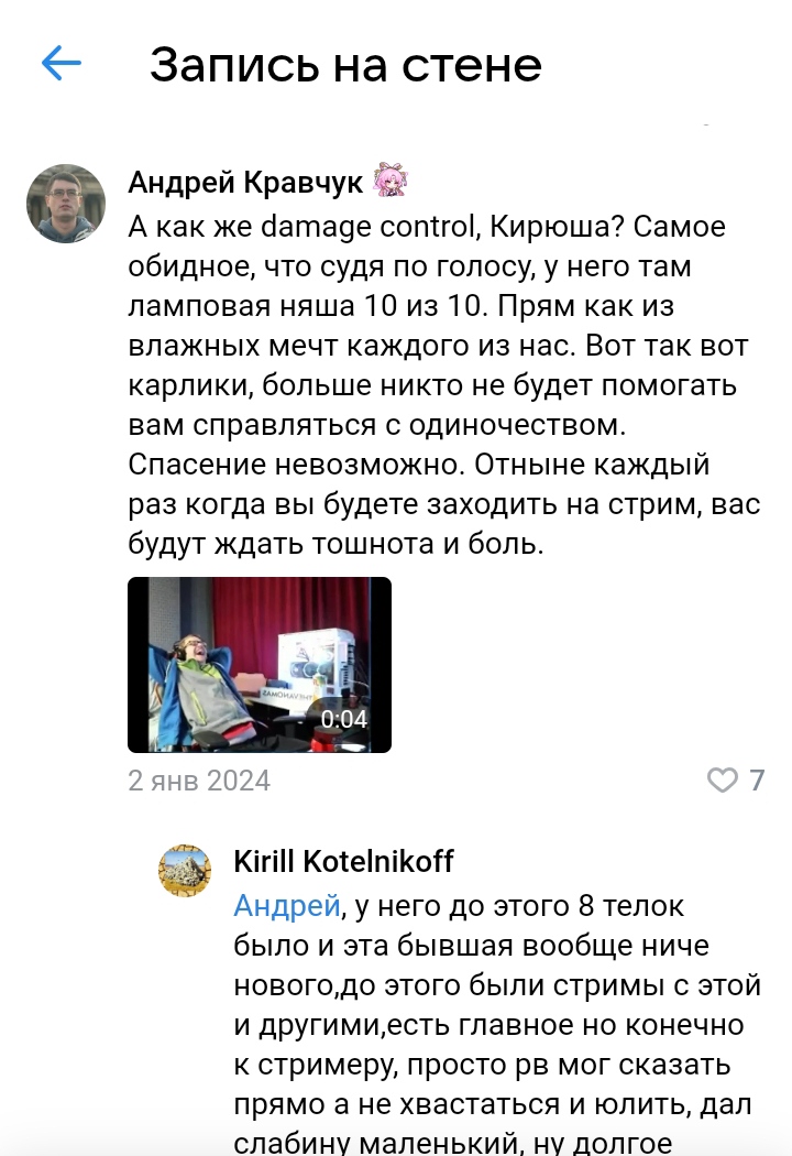 >>26036730 Не было бывших, 1 девка, с которой и щас. Забавно, что девка постила в паблик какой-то анонимно фотки всякой бытовухи, и там какой-то местный инцел в комментах написал, что она типа тёлка аудио рв