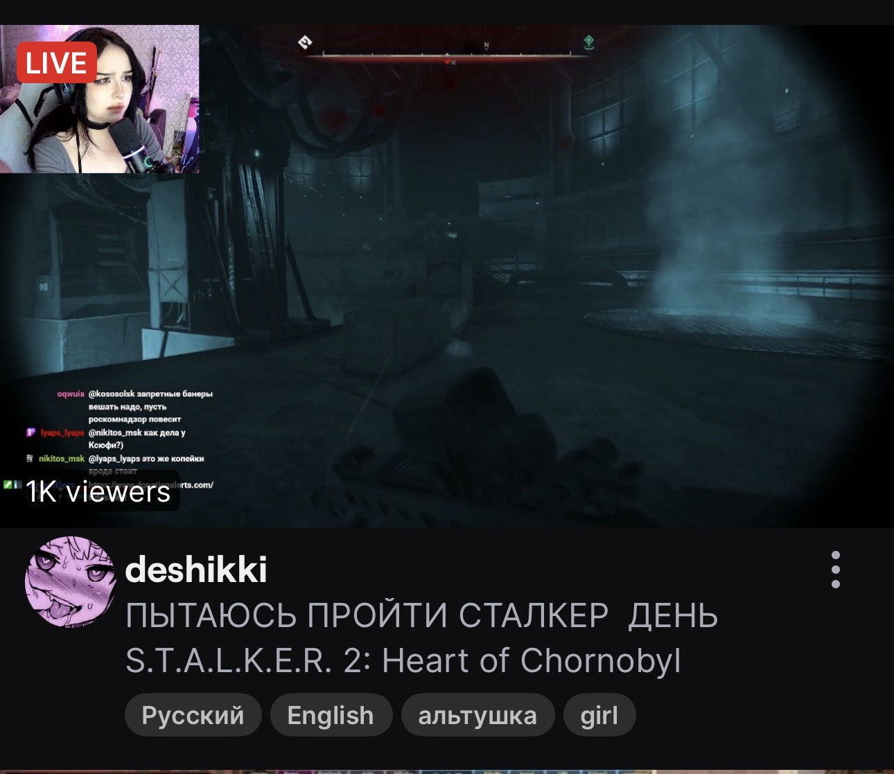 >>26034471 Она запустила сталкер 2 будучи россиянкой и только что оправдывала григоровича, спонсора мирового терроризма в лице всу. Считаю этим стримом должны заинтересоваться компетентные органы