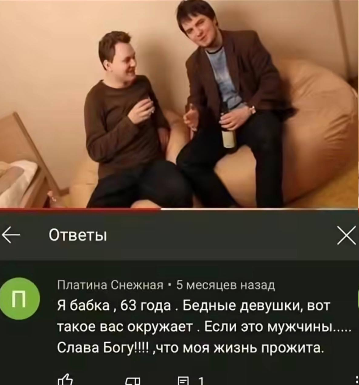 >>26059980 там теневой какой-то додик симп и профеминист соевый лысый похожий на папича, который живет с ней в одном городе и приезжал в питер тоже с ней вместе и за нее телефон со стримом носил, и которого она не променяла ни на жопича, ни на шмару