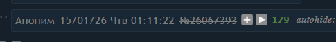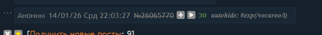 >>26065681 Это не соответствует действительности. У меня часто бывает, что пост не отображается как мой, на телефоне особенно, кто-то с телефона постит и появляются постеры.