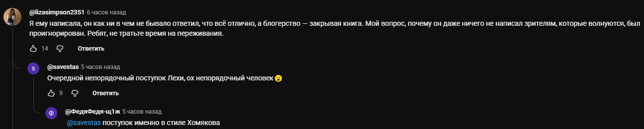 В 2020-2022г периодически возвращался и снова пропадал, более менее регулярно стал выкладывать видосы с начала 2023 года. С октября 2024 активно пилит видосы для бусти, в том числе обзоры на еду. Удалил свой основной аккаунт из-за нападок хейтеров.