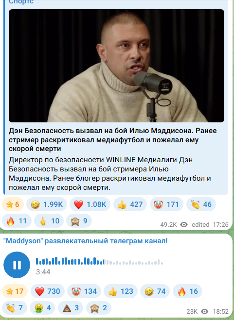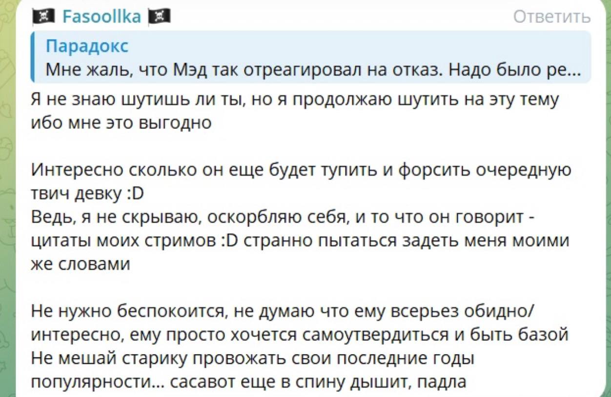 >>26073229 Уебище с ЛОХ треда, конторское говно только себе максимум может ляжки обоссать, Мэд такая недостягаемая величина для всех этих пидорасов, что это просто рофлы, чтобы в телеге попостить, пока стримов нет. Я понимаю в шутку это писать, но если это не троллинг, то IQ 50. Это как сказать, что они Киркорова какого-нибудь обоссут, если будут упоминать его на стримах. Мэд самый популярный русский стример с огромным отрывом, его буквально на федеральных каналах цитируют, и Спартак в рекламе использует. С ним сравнив разве что Папич, остальные где-то там у подножья валяются