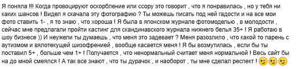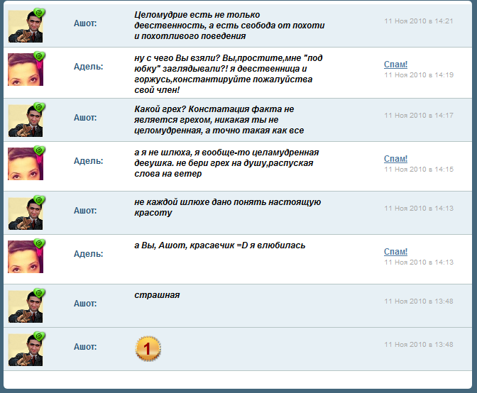 эммм, госпожа спотыкушка, вы такая милая можно понюхать ваш туалет аааа, на помощь макриди ко мне какой то старый дед пристает эу слышь чмодье пошел нахуй атсюда старый скуф по я тебе ебло не прострелил нах