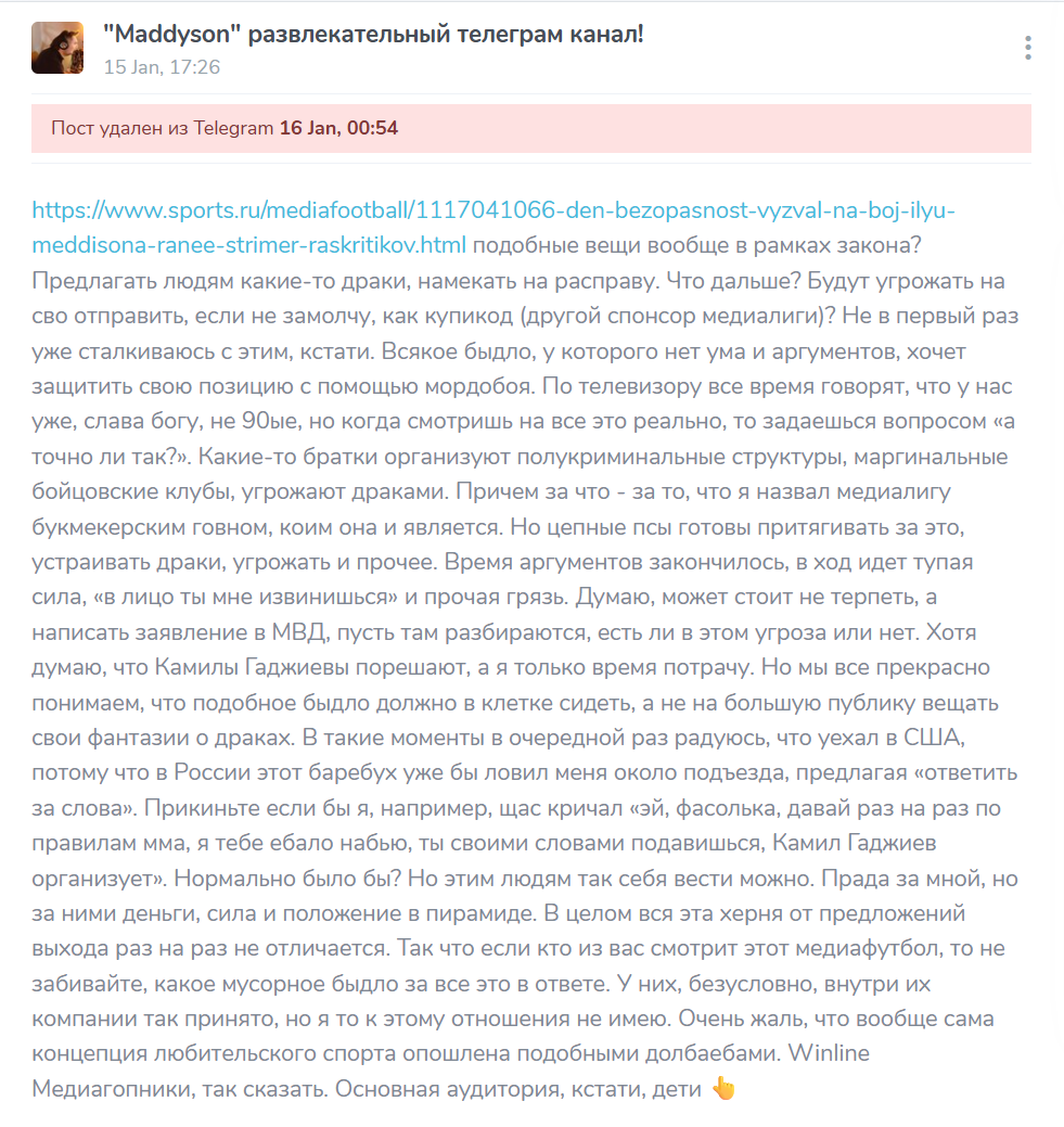 да блять, даже если ему ебальник заткнули через угрозы родителям, он через 2-3 месяца все равно не выдержит и что то высрет, он такой человек, не может молчать когда видит несправедливость или прочую свж хуйню