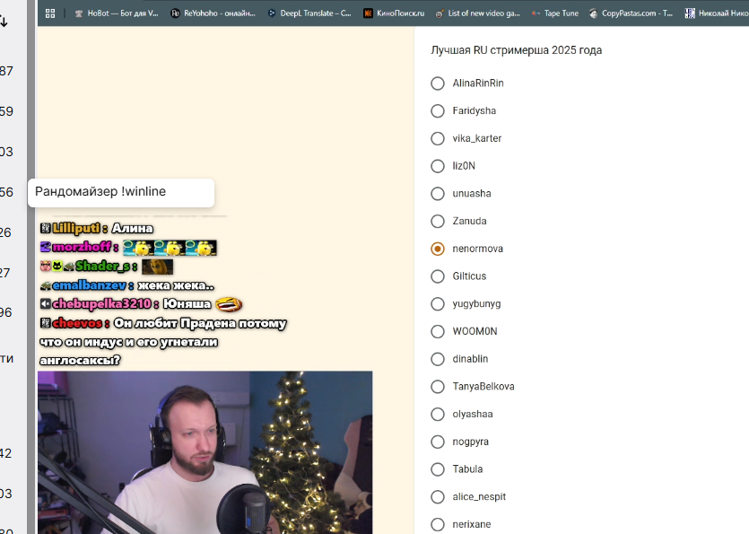 >>26081410 Сегодня был прикол, она смотрела подписки своих чаттерсов в том сервисе и её уговаривали посмотреть Илюху, она отказывалась, а потом когда дважды на инпут ввода нажала у неё было в автозаполнении "maddyson".