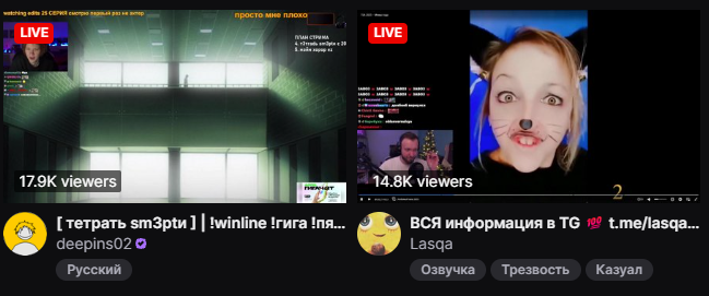 >>26081344 снг модерация в доле я думаю или просто свои люди какие слабые баны выдают, наши стримаки крутят вк хоббитов и прочее, кино смотрят уже все на твиче (хотя раньше перекаты на гг были) на ботов тем более закрывают глаза