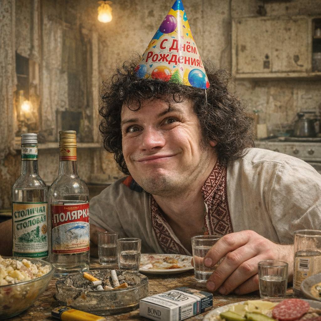 Бедный Дерьмак. Так он измучался с этим Днем рождения. Весь замаялся, лежать бы да спать на диване, отдыхать. Нет, переться в это кафе, рожи эти, карячиться клоунничать... Бедный Дерьмак.