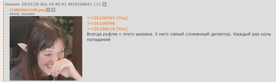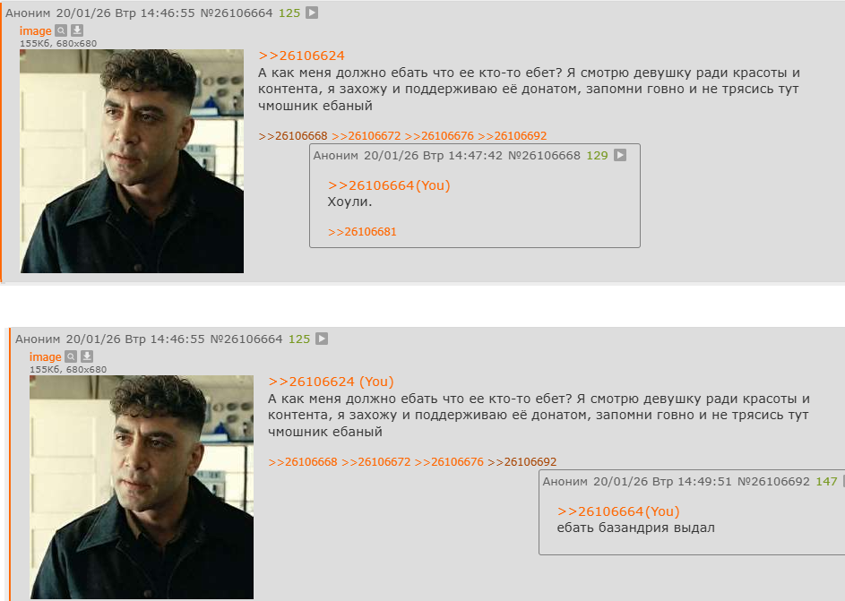 >>26106630 >>26106638 >>26106645 Репортите это говно. Оно не стесняется и раз в час поворяет тупо посты, юзая даж не только одни и те же фотки, но и тот ж самый порядок, и отлетает в бан.