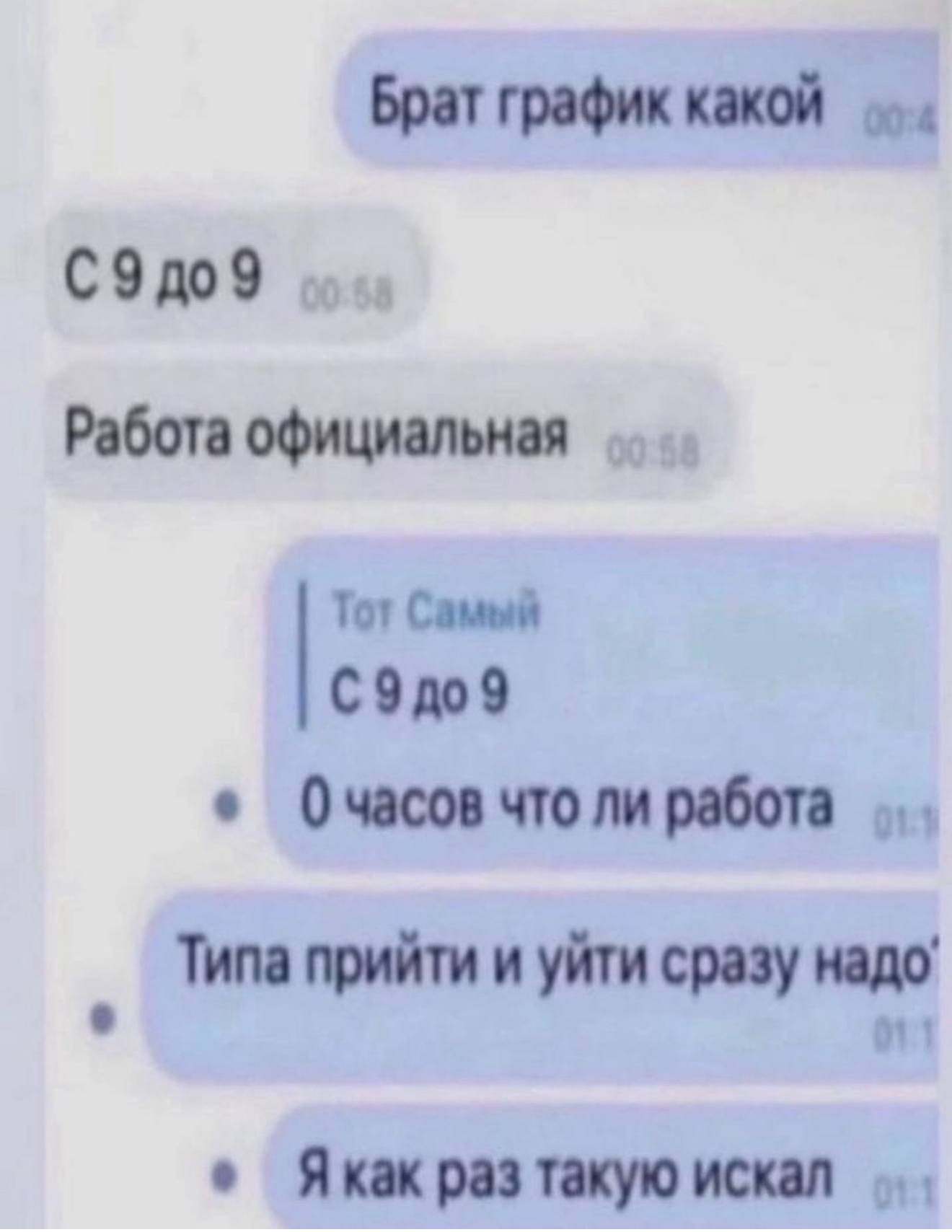 >>26110619 Так может казаться, пока ты не поработал анальником. Анальник, если ты не успел в сжатые сроки варпнуться благодаря таланту или связям в тимлиды или ещё выше, это ходячий заёбанный зомби с бесконечной работой. А среднестатистический электрик - это мужичок на чилле, который возьмёт у тебя 4к за 15-минутную замену сраного узо. А если он коммутацию в какой-нибудь айтишной конторе обслуживает, так там зарплаты айтишные и будут.