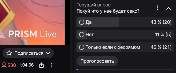 Тут не совсем так - я посмотрел ее стрим на квартире у Полякова 2го декабря - она давала ему шанс на самом деле, чтобы он проявил себя как мужчина, выступил в инициативной активной роли, а он был пассивен.