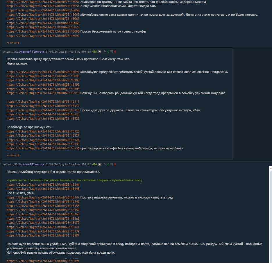 >>26116126 Его уже в прошлом треде забанили, и до этого банили, он обходит постоянно, ему подсеть надо давать. Я ещё нейтрально относился когда он только чецву постил, но щас он уже все границы перешёл с этой бабой клоунессой