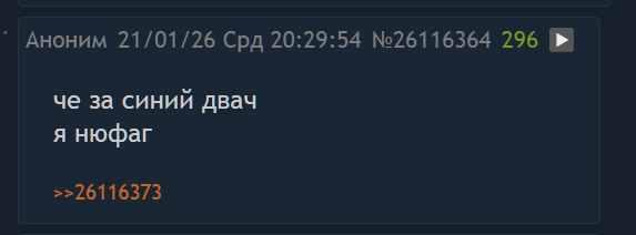 >>26116364 @monkey >>26116364 это двач, просто у тебя тема синяя включилась или через какойто браузер/приложение синий шит рендерится. норм тема, привыкнешь.