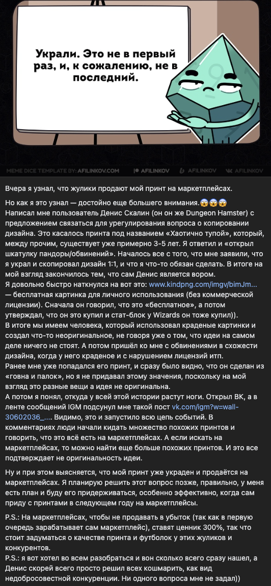 правильно ли я понял что Дэн Пипитанец решил с помощью БЛЕФА стрясти баблишка с рандомного васи из интернета, а этот вася оказался автором артов, которые Дэн Пиздуотлизатьмастер скачал из интернета? это же просто готовый сюжет для кино-комедии!
