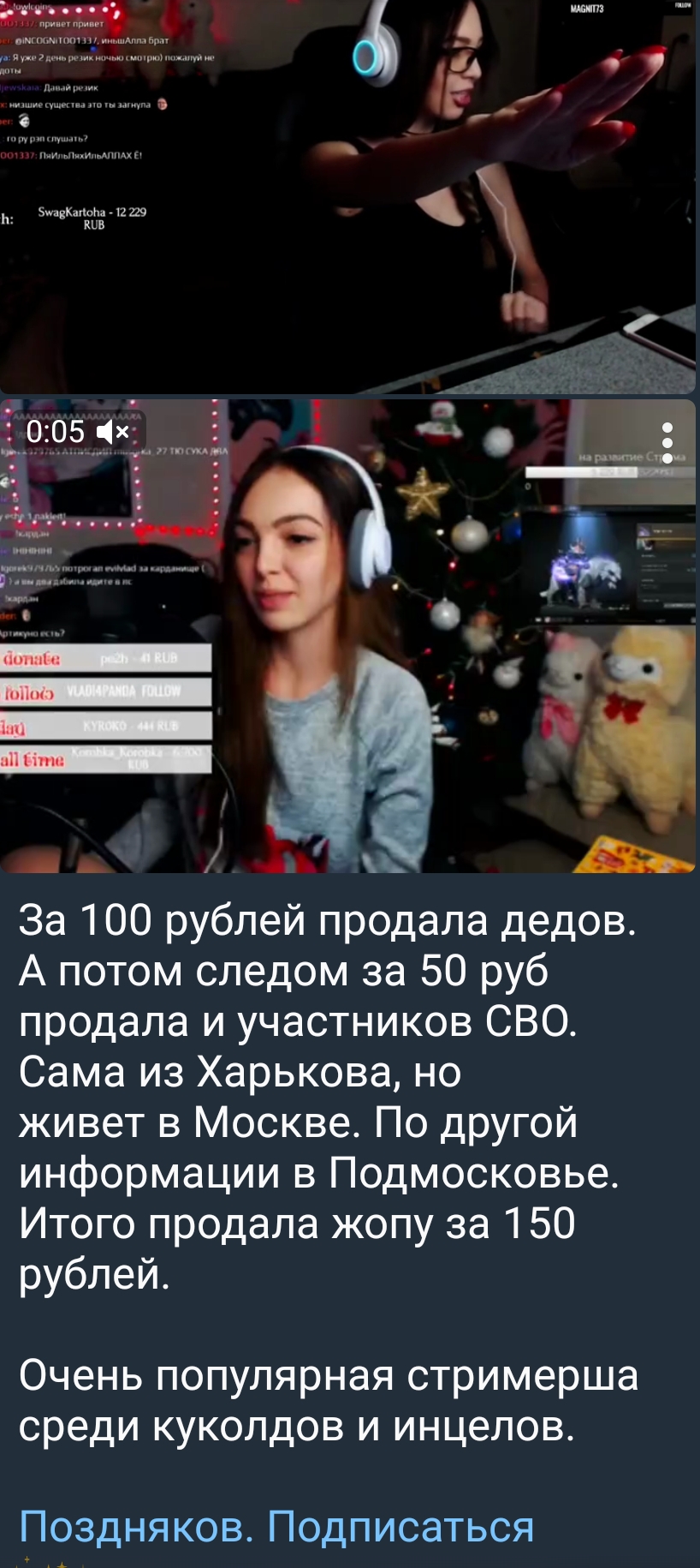 Очень популярная стримерша среди куколдов и инцелов.