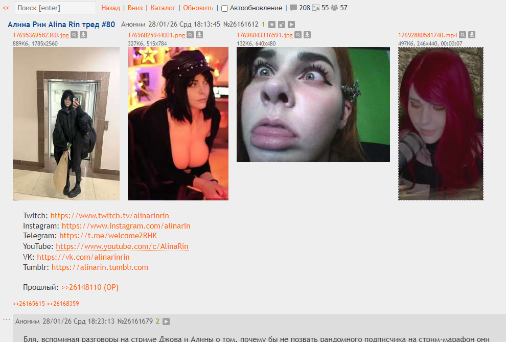 Тяжело поверить, что тридцатисемилетняя миллионерша, владелица двадцати квартир в пределах садового кольца, надевает поролоновую жопу, чтобы впечатлить инцелов. Но верные кисики помнят, что на нервничала из-за тредика, когда была еще в своем прайме, молодая и худая.