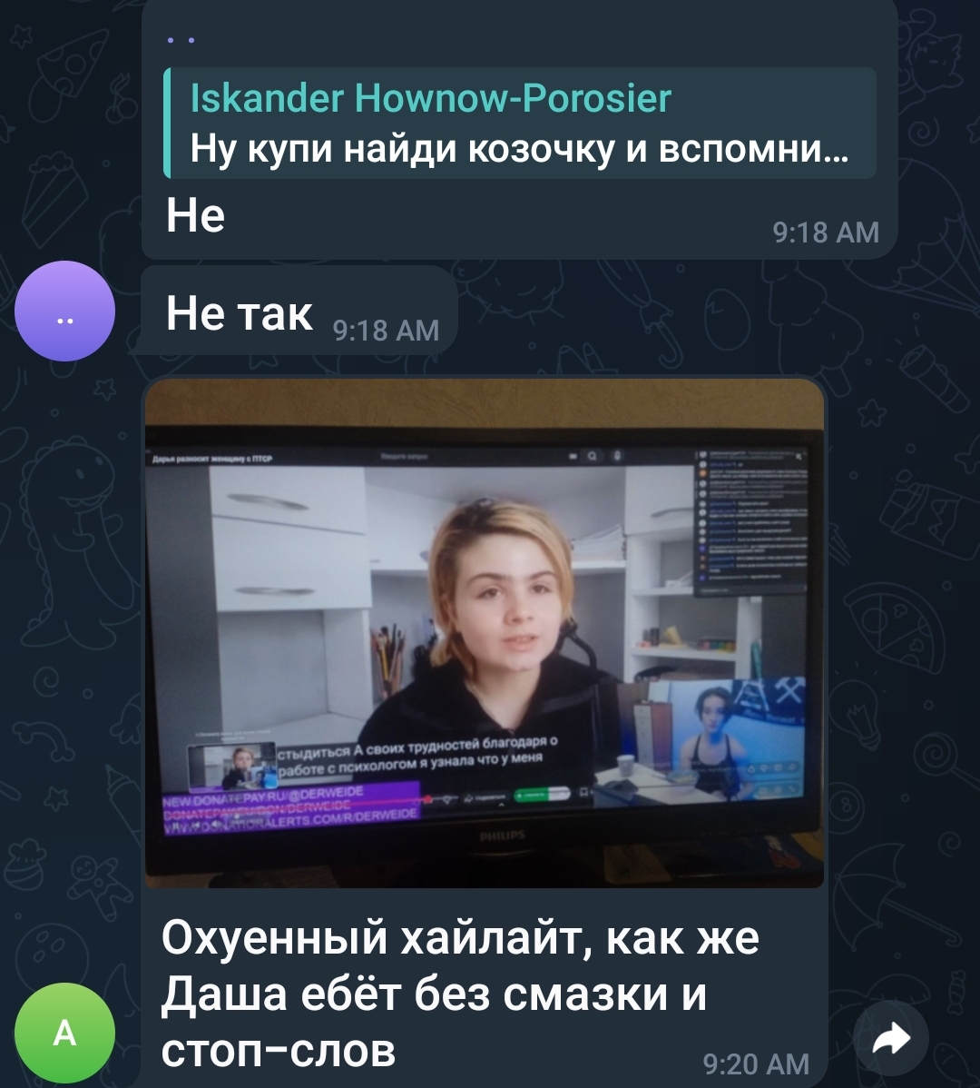 Хули вы хуйней страдаете куколды? Какие донатки блочить? Надо один раз спортиков нанять сказав что она вес увела и все, пусть ей устроят знакомство с бордюром как в американской истории х, зубки нынче дорогие
