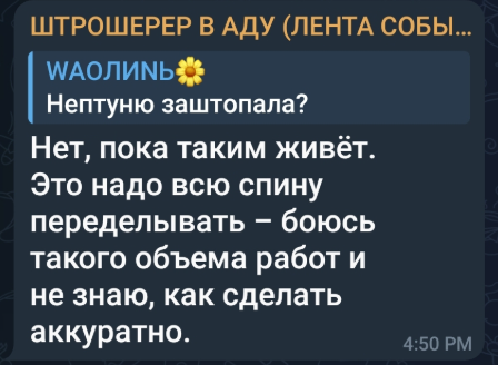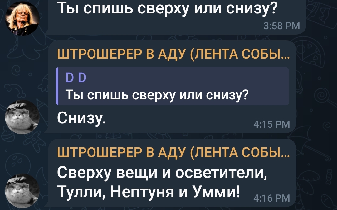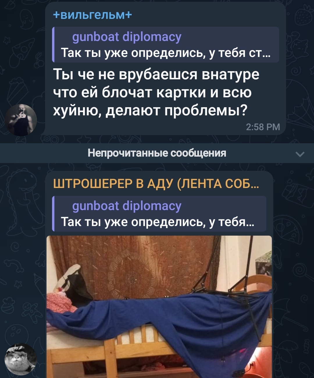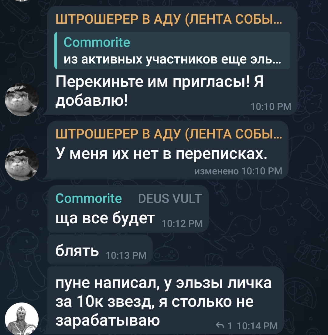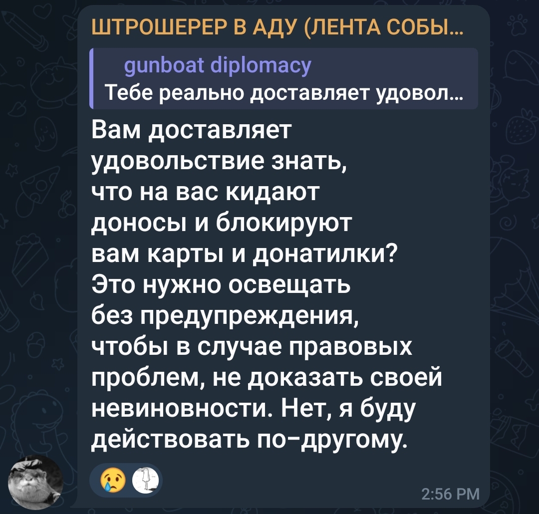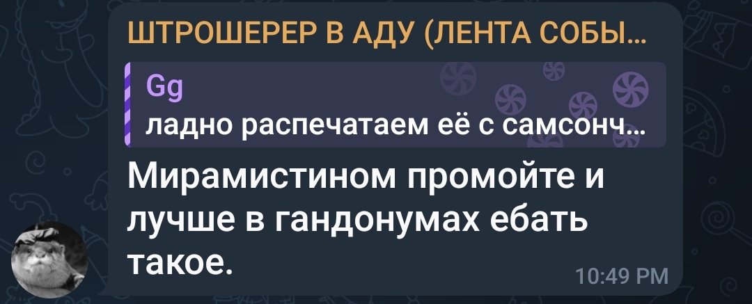 Штрошерер в открытую глумится над психбольной, но при этом сама сидит в чятиках с такими же как она ТП и пытается проработать травмы от нарцисса САШИ. Втайне хочет уволиться из ложа Гнатюка и съехать обратно в ВН на БМ, но не может. Поможем ей в этом!