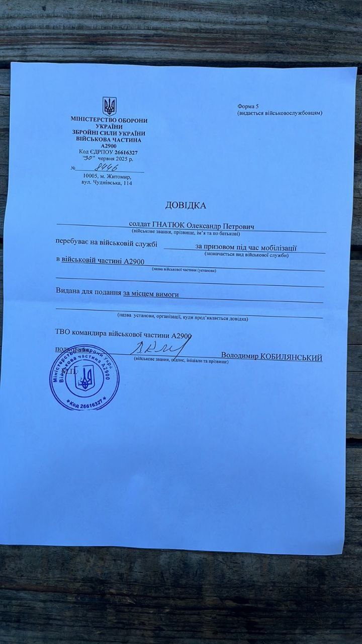 Полупустая справка где даты? о призыве и службе в десантуре (А2900) вкинутая в начале сентября, не похоронка, что удобно для отвода вопросов - есть