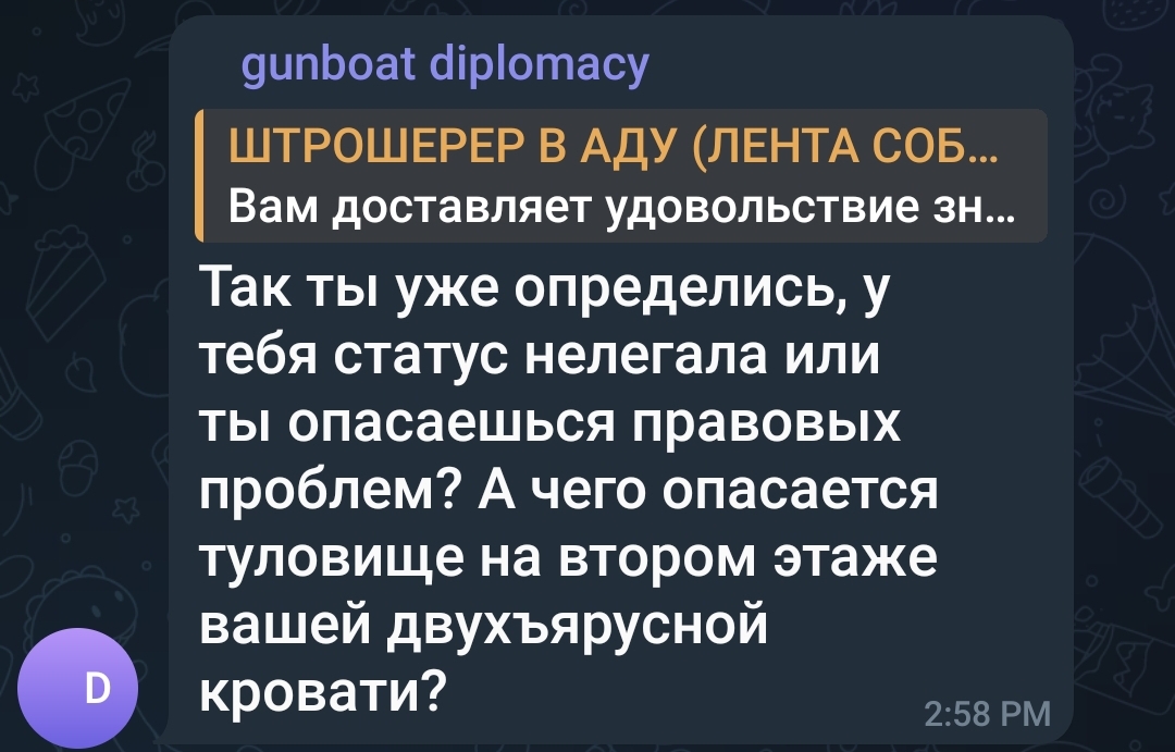 Also, потешного укра отмечали ранее, а у васильны он сидит с июня, на вопрос чому не на фронте, везде отвечает одно, но более доходчиво за него говорит его активность в раковниках сильно дальше торшеровских (чё вил, думал так отсидеться в тени дафутиного позора, пока тебя с говном мешали в расолуховских раковальнях? средиземыш ты наш комнатный, тьфу блять), не боитесь бана - ловите с него смехуёчки свободно - это кадр.