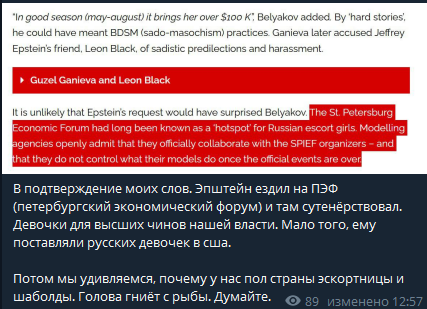 Бтв, олды вспомнят ее каменты в чате у Гитмана про то что "все мужики смотрят цп" и что она поддерживает взгляды Светова, сюда же аватарка на скейтерском форуме (медведь с дилдо), авторства британского художника который рисует таки это самое, видимо какая-то связь с Эпштайном все же была.