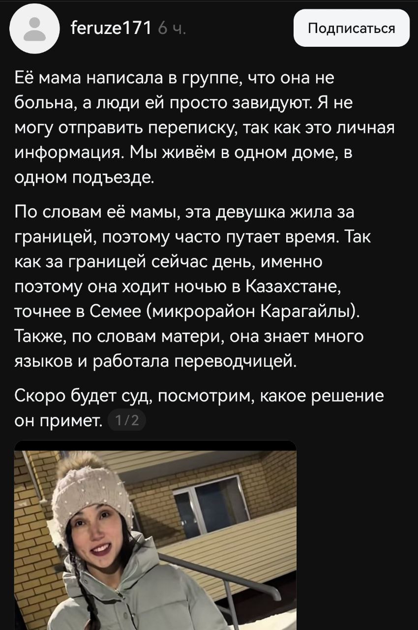 В инсте Анель +2 подписки на каких турков. Похоже доступ к телефону есть. Возможно не лежит в дурке, либо в открытом отделении. Либо в закрытом дали попользоваться на свидание.