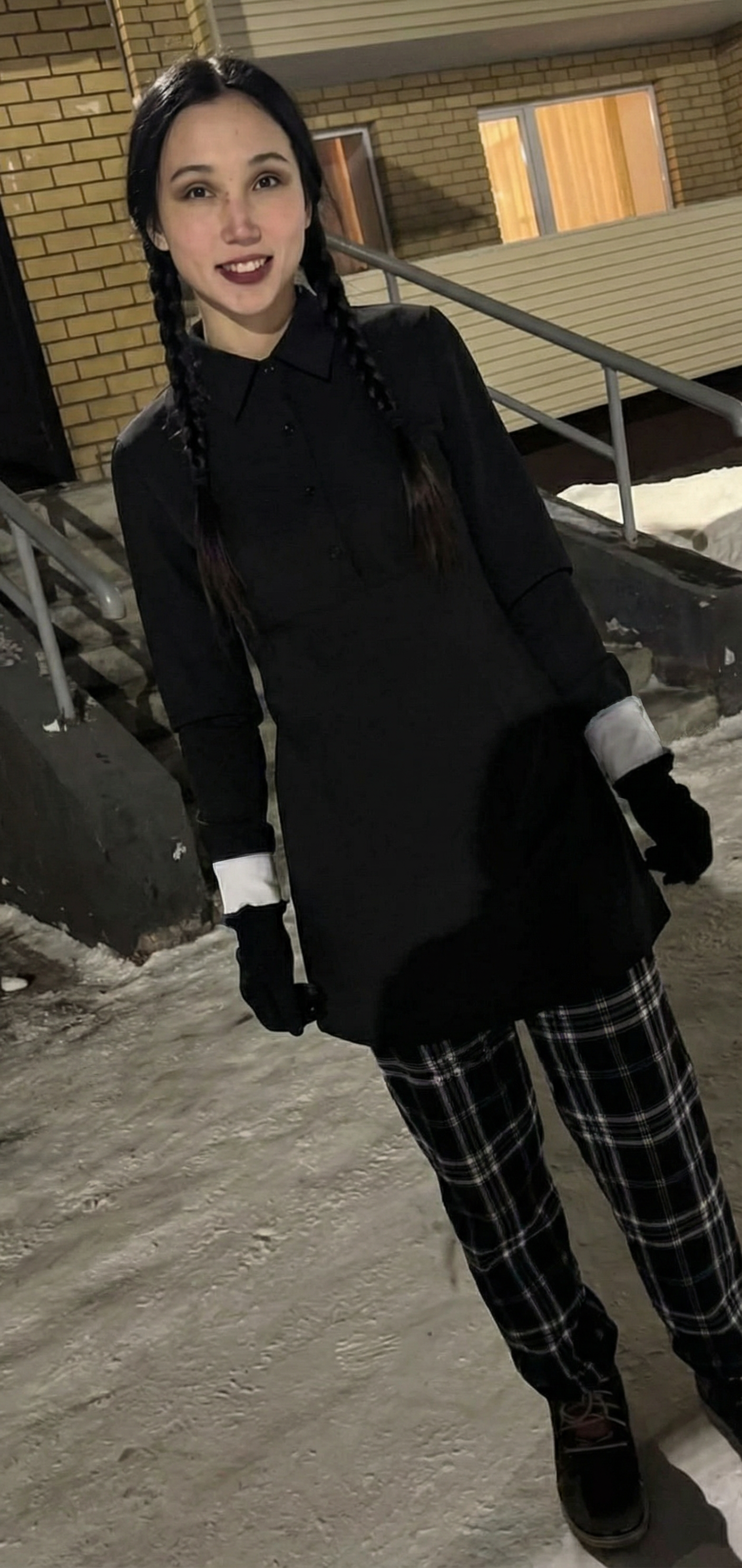 Стори: Конфликт начался с того, что Анель попыталась зайти в подъезд за Аружан, но та услышав, что прямо за ее спиной кто-то очень очень быстро топает, оглянулась назад, и увидела нашу Анель, передвигающуюся с военной выправкой, и решила пропустить Анель вперед. Но Анель взбугуртнула и начала настаивать на том, чтобы Аружан вошла первой, попутно распуская руки. Бугурт по всей видимости был вызван тем, что она торчала там хуй знает сколько, и все ради того, чтобы ее пропустили вперед. Аружан решила не идти в подъезд, а начать снимать на телефон. На видео попали первые секунды её бугурта, а когда Анеля заметила, что ее снимают, она сразу же перевоплотилась в милую, кокетничающую девочку, хотя в конце все же неудержалась и намекнула о выкалывании глаз операторше. Все это происходило в три часа ночи. Оказывается, что это не первое ее злодеяние. До этого она уже успела проколоть кому-то шины, получить срок, исцарапать, и создать еще хз сколько конфликтов на ровном месте. Что интересно, все ее жертвы женского пола. Также есть видеозаписи, где она несколько раз подряд преследует входящих в подъезд рандомов, неподвижно глазеет на квартирную дверь, и преследуют какую-то рандомную тётку до хаты. Закончилось все судом, где Анеле выписали штраф в 85к тенге(12к рублей) за мат, а саму положили в дурку. В суде она просила маму дать ей "что-нибудь", например "хоть иголку какую-нибудь".