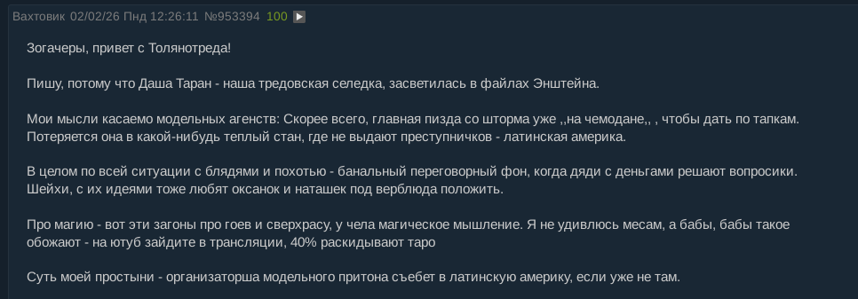 Пиздец насрал в шапку каким-то хомяком которого никто не видел никто никогда не смотрел и не знает, из ретротусы его никто не знает, далее, яна, 20 лет назад жирдяй с хутора дарил ей подарки, всё, потом идёт сам жидяй о котором кинаман даже не хочет слышать, это было давно и не правда, в таком ключе и последнее группа плазма сука плазма блять, ты точно здоров? Мне кажется ты либо бухой, либо под веществами. Хотя может быть что упорот всем. Это самый настоящий нерелейтед кал и угон треда.