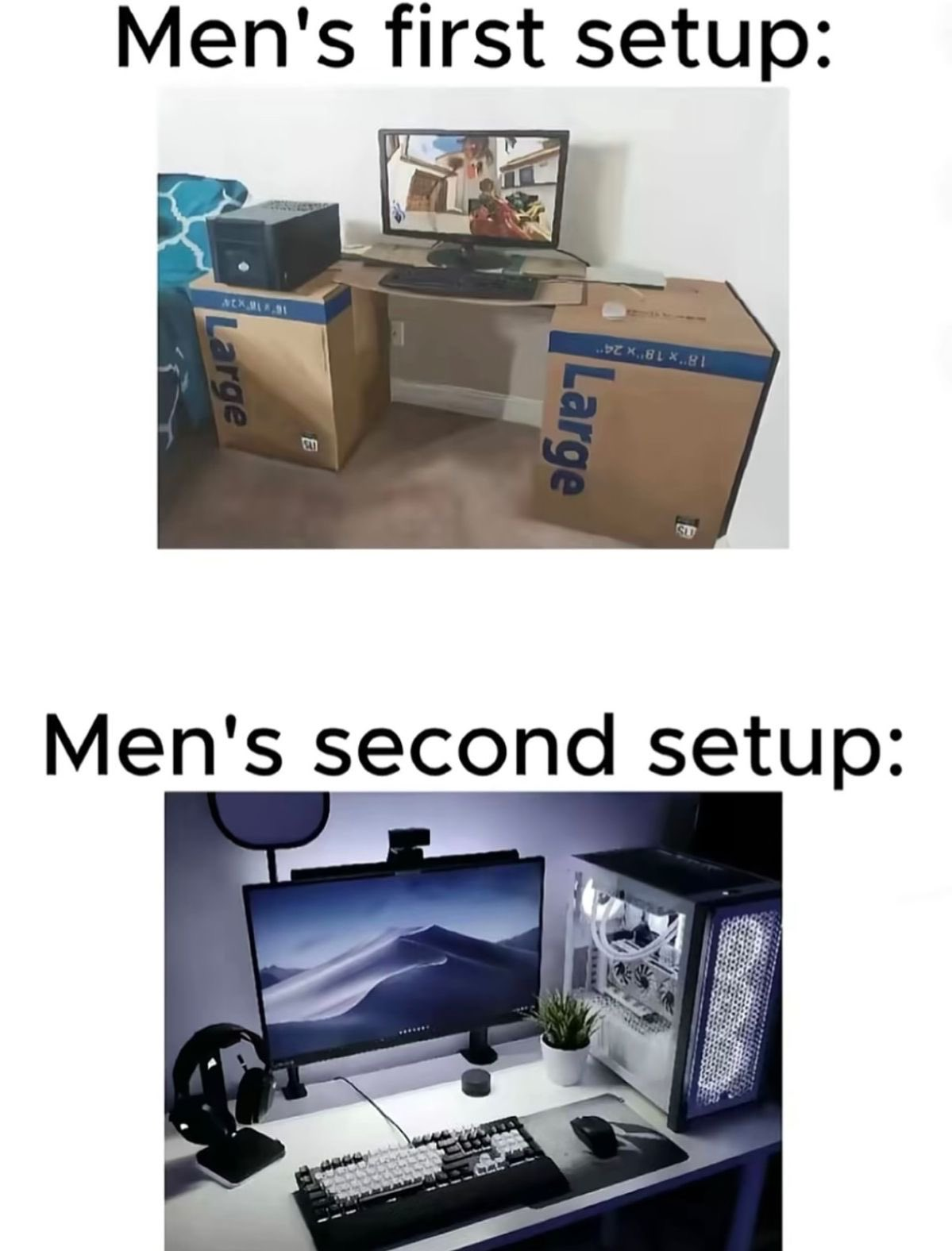 >>26182909 В обоих случаях rомпы стоят дорого. На верхней картинке miniITX Cooler Master из десятых. Дорогой корпус не для всех. В нем так же комплектуха дорогая. МиниИТХ платы тогда были редкими и дорогими. Ну и весь комп очевидно дорогой. Видимо вся котлета ушла на системник. На стол денег не осталось. А снизу и так понятно. Современные свистоперделки с подсветОчкой.