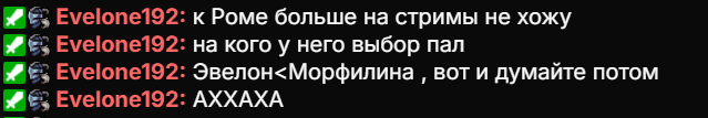 да эвел уже все решил, сегодня на стримах у юички и мокривского его не будет, так как там есть морфилина, а у макса будет и там есть натусик. Выводы сами делайте