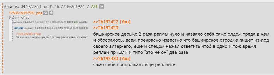 >>26192422 >>26192423 башкирское дерьмо 2 раза реплаинуло и назвало себя само олдом треда в чем и обосралось, всем прекрасно известно что башкирское отродие пишет из-под своего алтер-его, еще и спецом нажал ответить чтоб в одно и тож время реплаи пришли и типо "это не он" два раза >>26192433 само себе продолжает еще реплаить
