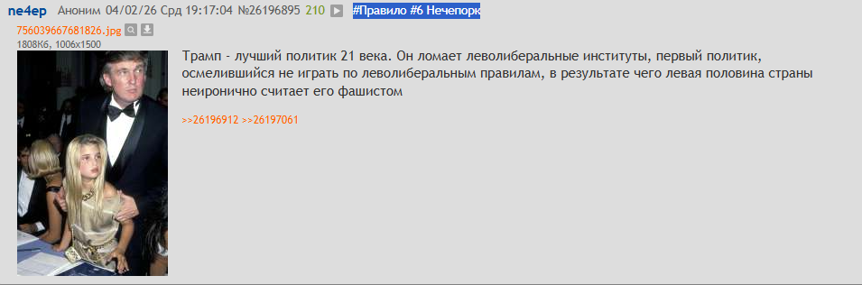>>26196958 Ты ещё спроси почему в стране традиционных ценностей трансгендер самая популярная категория. Или зачем правак, как он себя называет, эксперт в артхаусе и политике дрочит на шотиков