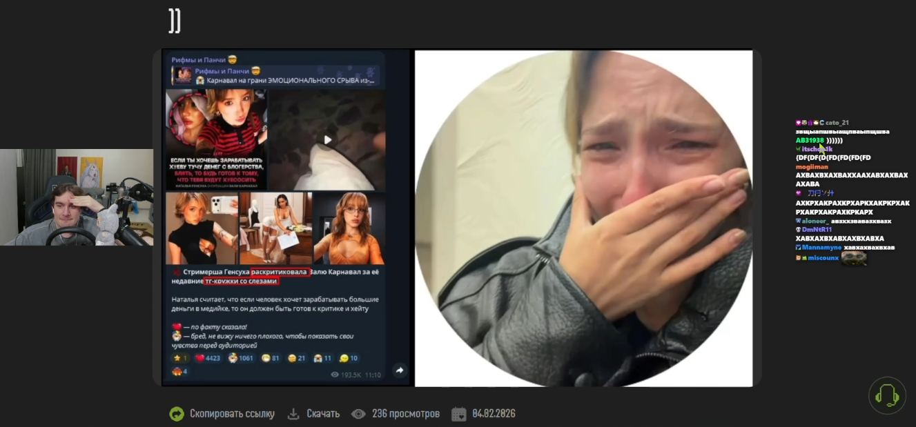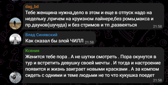 >>26198540 мне кажется он в целом про всё про касты про онлайны про накрутку про то что стримить норм не может из-за кастов опять таки и тд и тп Всё накопилось