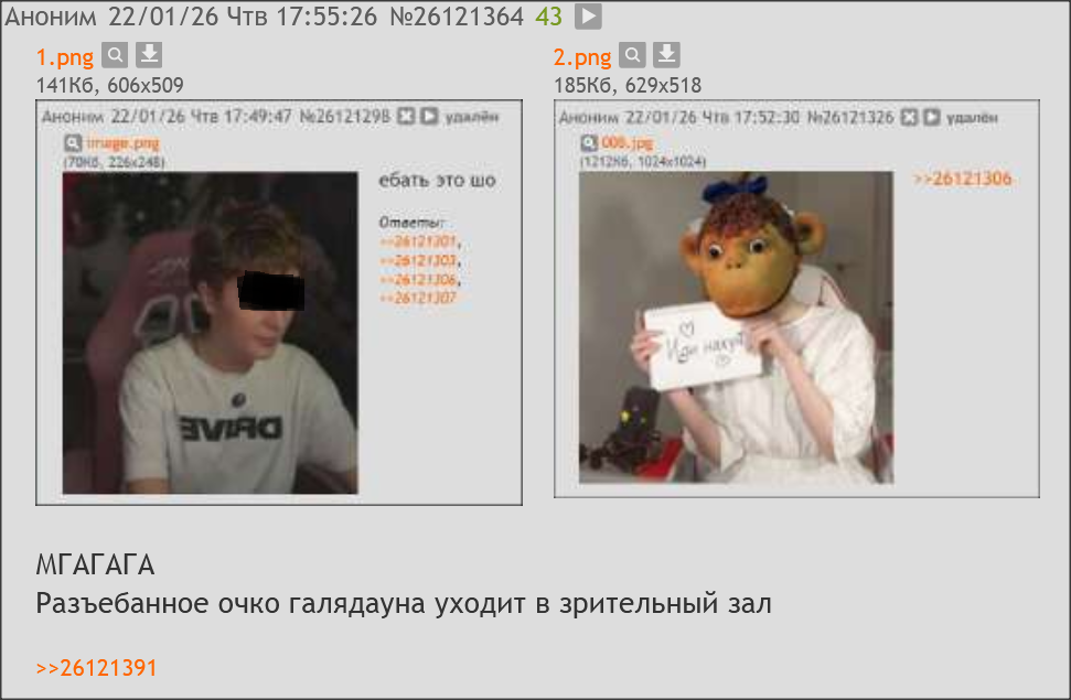 >>26207887 Моча прибегает когда здесь Галю ненормову постят