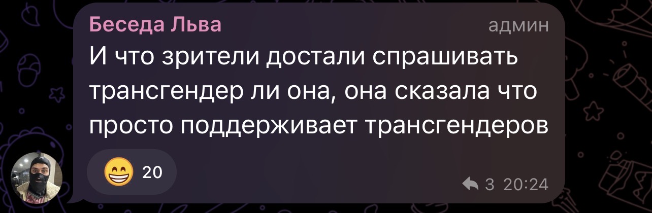 Да там было видно, что это баба мужиковатая, а не мужик женственный. Ни кадыка, ни хуя, сблева впритык с ней терся, у транса точно бы встал, он как минимум почувствовал бы хуй. лгбт значок не значит, что не стала бы с мужиком ебаться, вон Steph Kegels, вебкамшица известная, тоже лгбт, любит баб больше, но замужем и требует хуй регулярно. Би-шка просто и все. Сблева просто видимо первый раз сосался, та поняла, что секс хуйня будет и свалила