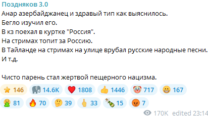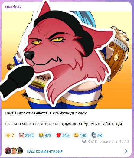 >>26225859 Это байт, он выкатит ролик по этому поводу, ему не по масти отказываться от ответки. Другой вопрос в том, не найдутся ли добрые люди которые напишут той же мизулиной про релоканта47 и он получит статус иноагента и пойдет опять на 10 канадцев рекламировать казик? Ну или не найдутся ли добрые люди в мюнхене и не напишут заяву на Ивана Аргонианина за пропаганду нацизма и ненависти на национальной почве. Вот тогда будет смешно когда штурмовик под позывным доедатель в шторм зет будет хуяриться в окопе с мыколой аргонианином