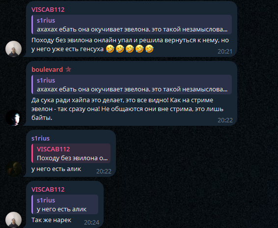 Я знаю их обоих и отношусь к ним с уважением. Мы не близкие друзья, но я уверена, что в любой сложной для меня ситуации они всегда встанут за меня горой, помогут и защитят. Да, была допущена ошибка. И я уверена, что они осознали её сразу. Но это хорошие, добрые ребята, и не стоит на этой ситуации сеять семя раздора и сталкивать нас с друг другом и тем более устраивать травлю!