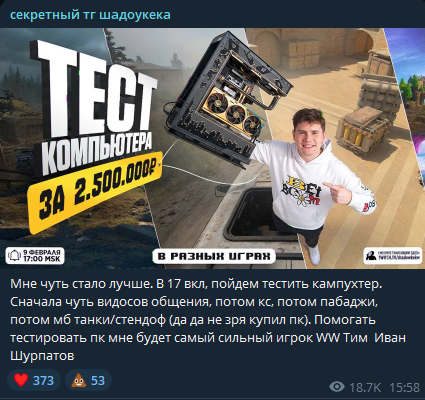 >>26234171 Есть такая вещь как совместимость комплектующих, хуёво собранный комп за лям может быть в разы хуже нормально собранного за 200к. А маслик просто идей на стрим не придумал и решил подать игру в ксочку и пабг в другой обертке