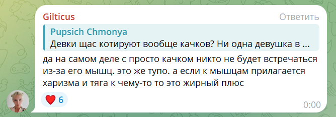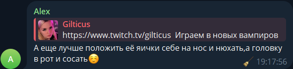 Я совершенно не поддерживаю грубые оскорбления, не смотря на то нравится или нет кому то гилтикус Но что лично меня раздражает ( и я думаю не меня одного) так это одна и таже реакция и лицо Это стеснительное лицо и попытки сдерживать улыбку. Улыбается но молчит, ничего не говорит. И эта реакция на всех прохожих кто к ней подходил или на какие либо вопросы на стримах. Я полностью не смотрел ни одного стрима. Так как нахожусь в здравии и не понимаю как можно смотреть 4 часа на одно и тоже лицо и реакцию. Это очень сильно раздражает Фото как пример