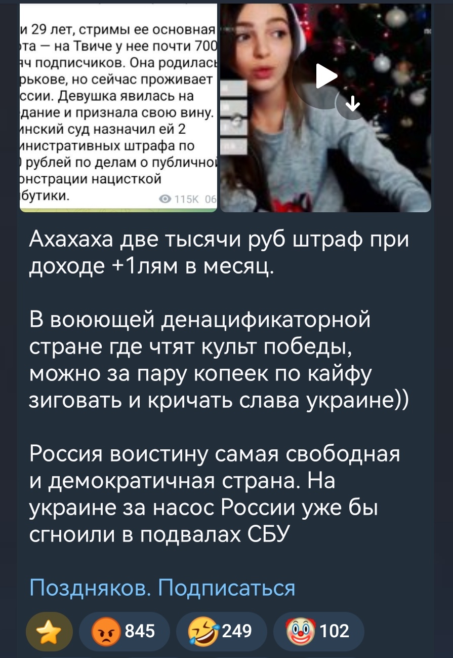 >>26240724 Хз, как будто это вообще никакой клип. "Осуждаю" постоянно орут на твиче, а явных призывов в нём нет. Если за первые, по которым реально возникают вопросы, дали по тыщёнке, думаю эти два клипа вообще хуйня. Скажет мол "боюсь политику обсуждать на трансляции чтобы не забанили" да и всё.