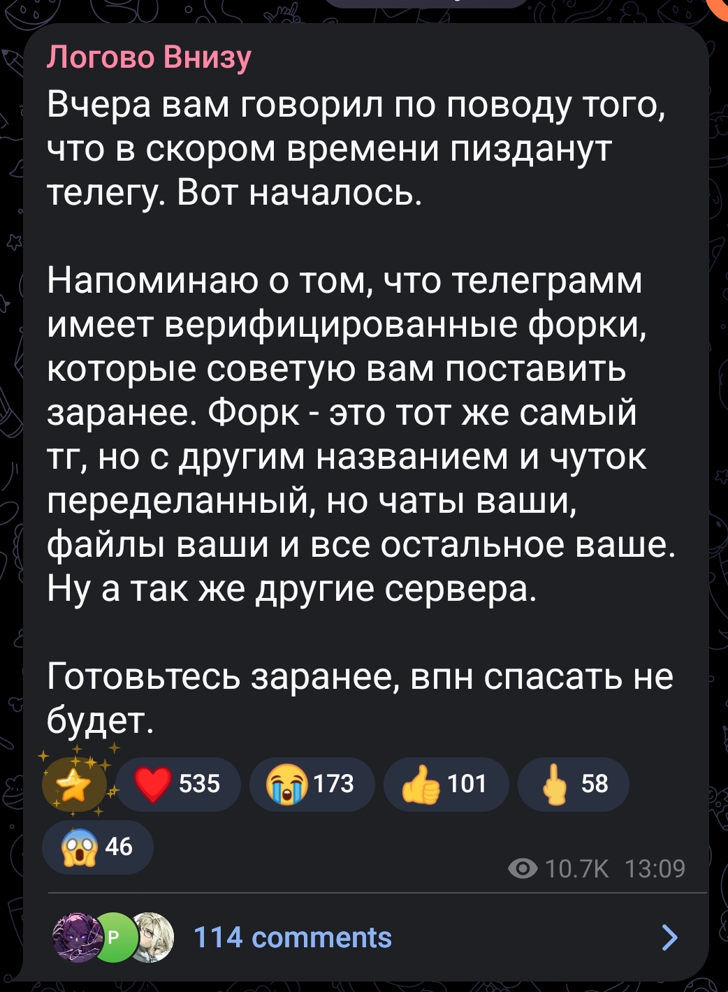Паникеры как обычно. Ниче не изменится с тг. Будет работать как и инста. Вот когда твич блокнут будет не удобно многим да. Часть онлайнов срежется но накруточкой это изи потом исправить. Так что ничего не поменяется